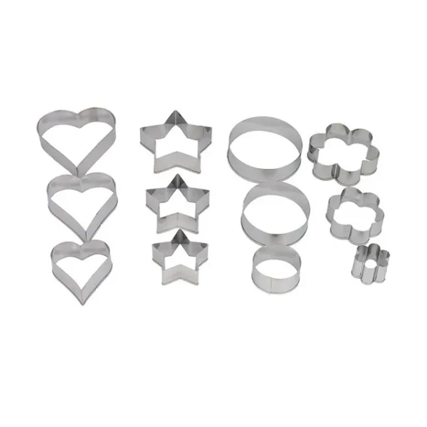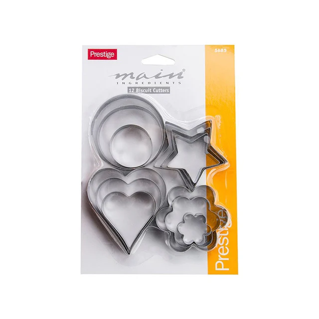 This set of 12 Biscuit Cutters from Prestige contains the four most popular mini cutter shapes in three sizes each for Biscuits, Cookies, Icing, Sugar-craft, and Cake Decoration. The Cutters are made of stainless steel and come in heart, flower, star, and circle shapes. Cut and make jam tarts, mince pies, pastries, canapes, scones, and more to your heart’s content with this set.