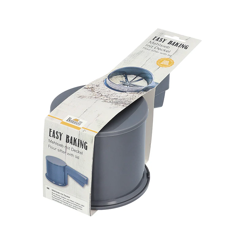New and practical for storage – flour sieve with lid and base to close.